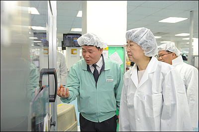 [쿠키뉴스=박주호 기자] 김승희 식품의약품안전처장(사진 오른쪽)이 대전시 대덕구 소재 샴푸·치약 생산업체 아모레퍼시픽을 방문해 안전관리 전반을 점검했다. epi0212@kukimedia.co.kr