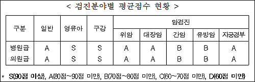 간암과 유방암 분야의 점수가 낮은 것은 다른 검진 유형보다 상대적으로 검진의 기술적 난도가 높기 때문으로 복지부는 풀이했다.