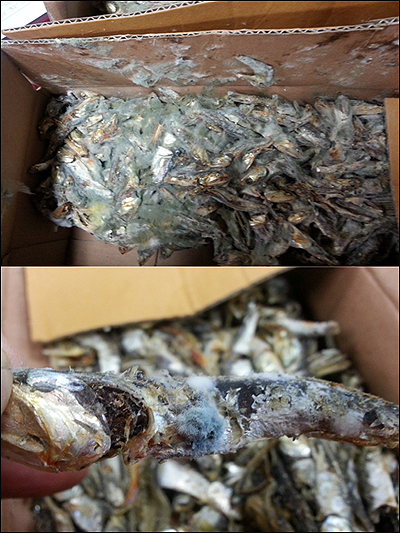 특히 김씨는 곰팡이가 핀 다른 건멸치 187박스(280㎏)를 열풍건조기를 사용해 ‘멸치분말’을 제조하고 있는 과정에서 적발됐다.