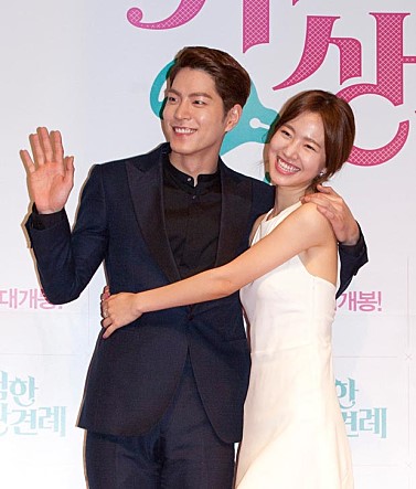 23일 서울 광진구 롯데시네마 건대입구에서 열린 영화 ‘위험한 상견례2’ 기자간담회에서 360도로 카메라가 돌면서 찍은 키스신이 고생스러웠을 것 같다는 취재진의 질문에 두 사람은 얼굴을 미소를 띤 채 대답을 시작했다.