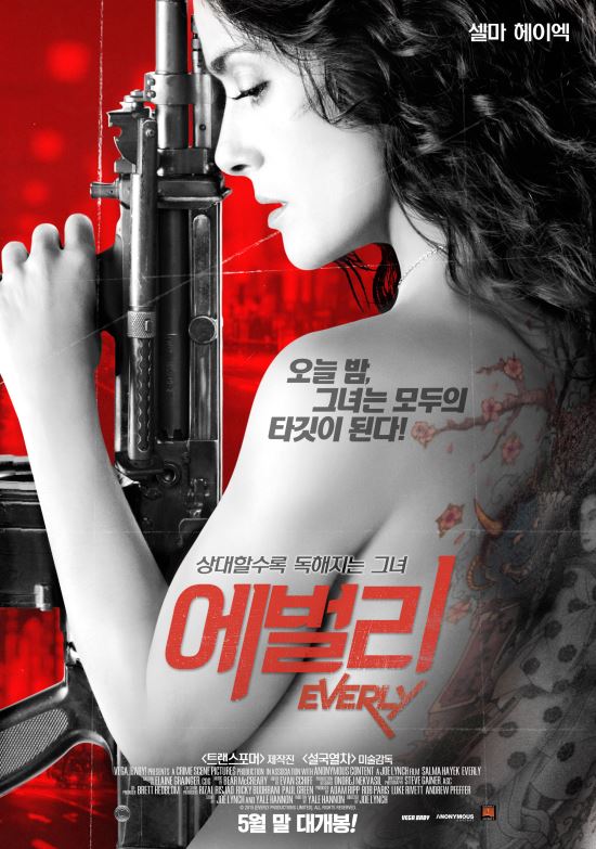 ‘에벌리’는 4년 동안 감금 됐던 주인공 에벌리(셀마 헤이엑)가 그 곳에서 벗어나 자신의 가족을 지키기 위해 복수를 시작하는 내용의 액션물이다. 한 여자가 복수를 위해 여전사로 변모하는 과정을 다양한 무기를 이용한 스타일리시한 액션신으로 그려냈다.