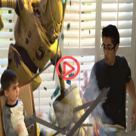 아들과 함께 노는 모습을 찍은 영상에 컴퓨터 그래픽(CG)을 입혀 만든 것으로, 아빠의 영상에는 주인공 아들과 더불어 살아있는 로봇, 총, 레이저 등이 등장해 실제 SF 영화 같은 장면이 연출됐네요.