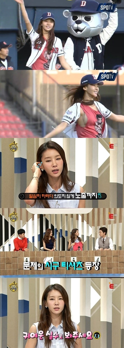 최근 진행된 E채널 ‘용감한 기자들’ 110회 녹화에서 김태현은 “김정민이 얼마 전 시구를 하면서 굉장히 이슈가 됐다”고 말문을 열었다. 지난달 김정민은 잠실구장에서 시구를 하던 도중 민소매 티셔츠 사이로 속옷이 노출됐다.