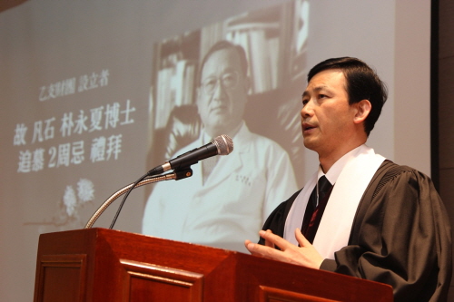 홍성희 을지병원 이사장을 비롯한 을지병원 직원, 을지대학교 성남캠퍼스 주요보직자 등 약 400여명이 참석한 가운데 열린 이날 추모예배는 을지병원 교목인 남일호 목사 집례로 고인의 뜻을 기렸다.