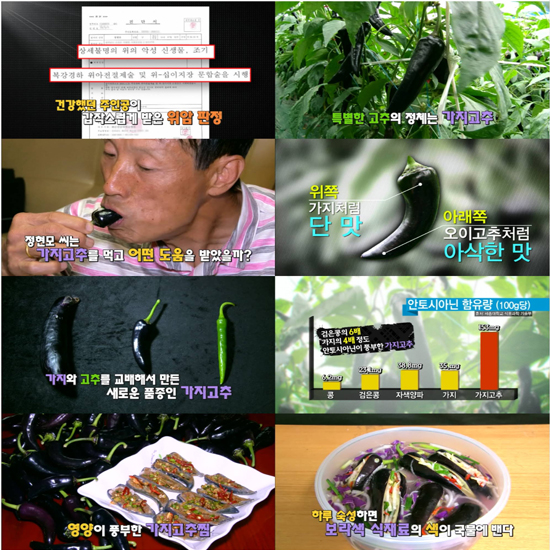 특히, 이날 방송에서 눈에 띄는 것은 맵지 않고 아삭한 맛이 일품이라는 ‘가지고추’의 암 예방 효능으로, ‘가지고추’는 가지와 고추를 교배한 품종으로 뾰족한 아래쪽은 오이 고추처럼 아삭한 맛을, 윗부분은 가지처럼 단 맛이 나는데요.