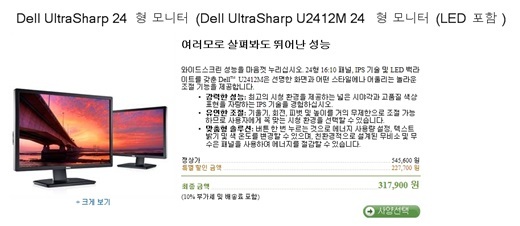 델은 지난 8일부터 홈페이지를 통해 54만5600원인 24인치 모니터 ‘U2412M’을 쿠폰 적용 등을 통해 13만6400원에 판매했다. 75%나 저렴한 가격에 인터넷이 달아올랐고 다음날인 9일에는 해당 제품이 품절되기에 이르렀다.