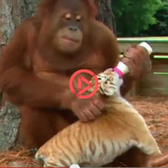 디스커버리 채널에 따르면 이 오랑우탄은 사파리에서 사육사들이 아기 호랑이들을 돌보는 걸 관찰한 뒤 이를 그대로 따라하게 되었다고 합니다. [출처=허핑턴포스트, 유튜브]