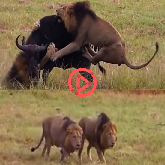 이를 눈치 못 챈 버팔로는 오히려 숫사자의 사정권으로 들어오는데, 기회를 잡은 숫사자들이 이내 어미 버팔로를 덮칩니다.