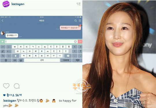 공개된 사진은 이사강과 배용준이 주고받은 문자메시지 대화창을 캡처 컷이었다. 이사강이 “축하해요. 진심으로”라는 메시지를 보내자 배용준은 “감사해요”라고 화답했다.