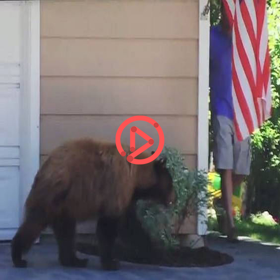 때마침 주택 주변에 산책을 나선 사람이 뭣 모르고 곰 쪽으로 다가오는데요.