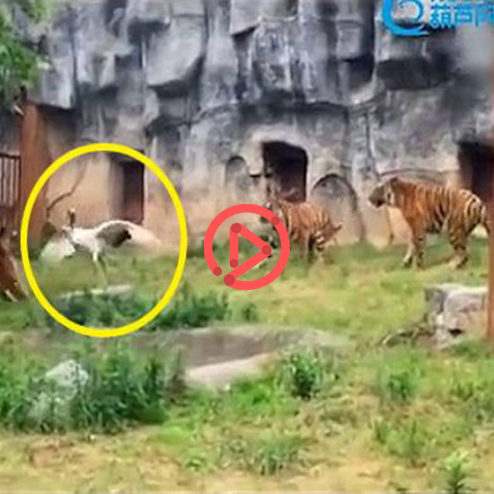 두루미 한 마리가 겁도 없이 호랑이 사육장으로 들어갔는데, 갑작스러운 두루미 출몰에 신기한 듯 호랑이들이 몰려듭니다.