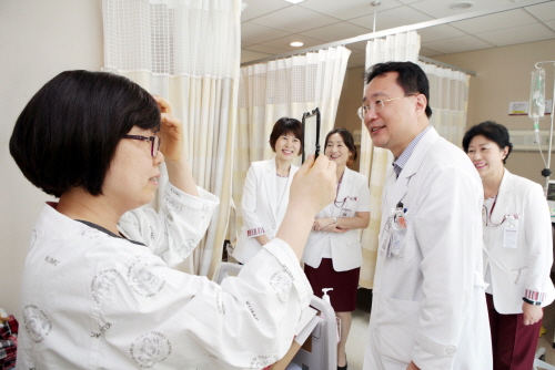 안암병원 호스피스회장 박종훈 교수(정형외과)는 의료진들과 함께 환자들에게 가발을 씌워주며 안재욱의 응원 메시지를 전하는 등 환담을 나눠 병실 전체에 따뜻한 온기를 가득 채웠다.