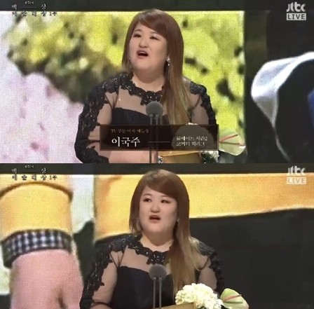 tvN ‘코미디빅리그’, SBS ‘룸메이트 시즌2’ 등에서 활약한 이국주는 “무대가 나 만큼이나 크다”는 재치있는 말로 수상소감을 시작했다.