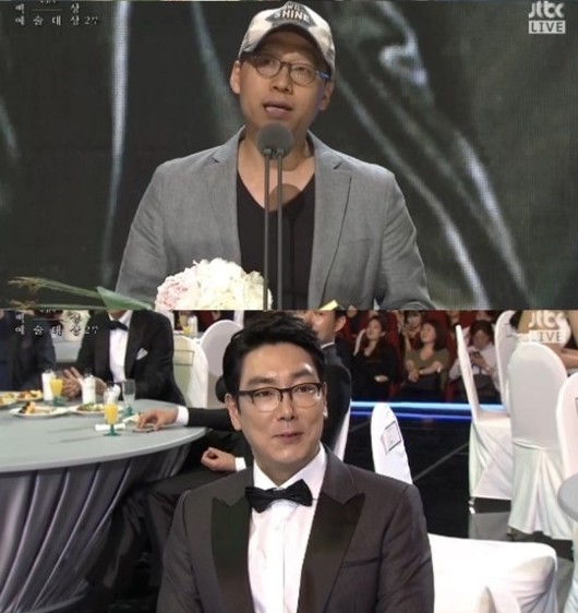 김성훈 감독은 “감사하다. 이 상에 노미네이트 됐다는 소식을 한 달 전쯤 듣고 지인들에게 축하 말을 들을 때마다 상에 연연하지 않는 척 모습을 연출했다. 몰래 백상관련 정보를 검색해봤다. 트로피는 어떻게 생겼나, 금은 아닌가 궁금했다. 다른 것도 주지 않나 생각했다”며 재치 있게 이야기를 이어갔다.