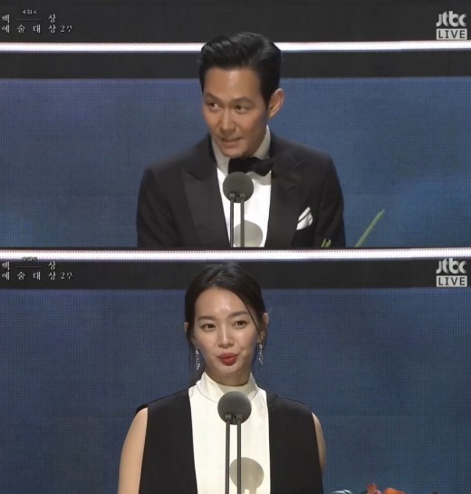 26일 서울 경희대 평화의 전당에서 열린 제51회 백상예술대상 시상식에서 인스타일 베스트 스타일상 수상자로 호명된 이정재와 신민아는 차례로 무대에 올랐다.