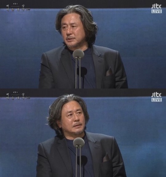최민식은 “임권택 감독님, 안성기 선배님도 계신데 참 쑥스럽다”며 소감을 시작했다. 그는 “보는 사람에 따라 호불호가 갈렸지만 ‘명량’은 내게 뜻 깊은 영화였다”며 “미천한 몸뚱아리와 생각으로 부족함을 느끼며 좌절감을 맛보는 계기가 됐다”고 말했다.