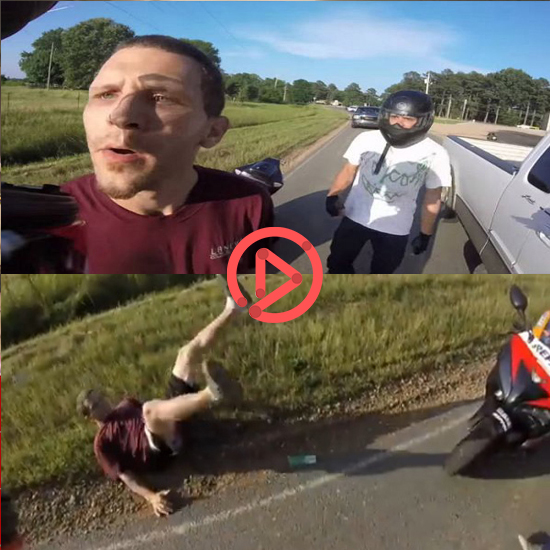 순식간에 길가에 나동그라진 운전자, 어리둥절해도 바로 일어나 맞대응 자세를 취하면서 영상은 마무리 되는데요.