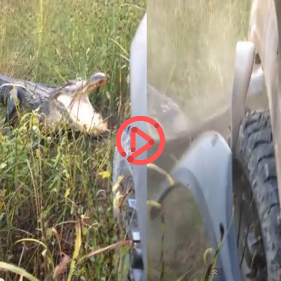 그는 한 손으로는 촬영을 하며 악어에게 겁을 주면서(?) 트럭을 조금씩 악어 쪽으로 움직였는데요.