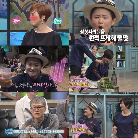 특히 1년간 숙성됐다는 산나물 발효액을 맛 본 이승연은 한층 고취된 표정과 제스처로 “선생님, 원래 이게 이렇게 취하나요?”라고 물어 좌중을 폭소케 만들었고, 김신영은 자신의 개인 물병에 발효액을 담아 녹화 중 계속해서 홀짝홀짝 마시는가 하면, 카메라 감독에게까지 한 잔 마셔볼 것을 권하는 모습으로 현장을 웃음바다로 만들었습니다.