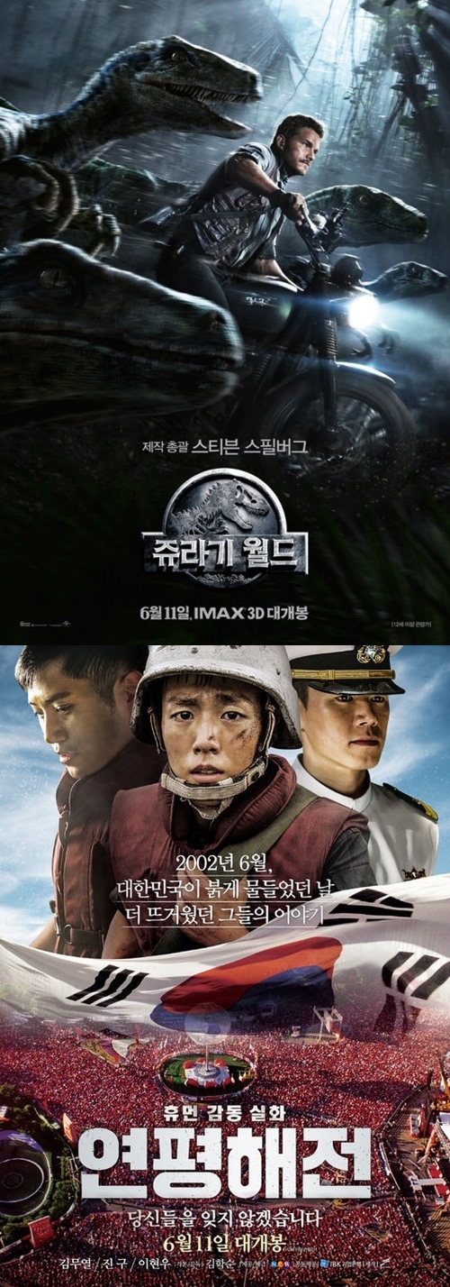 ‘연평해전’발(發) 나비효과에 다음주부터 줄줄이 개봉하는 ‘극비수사’ ‘경성학교’ ‘소수의견’ 등 한국 영화들도 비상이 걸렸다. ‘연평해전’ 개봉 연기로 극장가가 ‘쥬라기 월드’ 세상이 된 가운데 이달 말 4개 작품이 몰려 상영관을 두고 ‘제살 깎아먹기’ 경쟁이 불가피하기 때문이다. 개봉 초반 기세가 부진할 경우 일찍 막을 내릴 가능성이 그 어느 때보다 높아 마케팅 부담만 더욱 가중된 상황이다. 개봉 전 예매율을 선점하기 위한 온갖 꼼수가 횡횡할 것이라는 전망도 나온다.