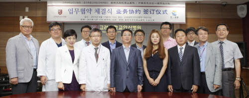 [쿠키뉴스=김단비 기자] 고려대 안산병원은 17일 대회의실에서 중국 흑룡강성 하얼빈시 소재 세일국제여행사와 업무협약을 체결했다.