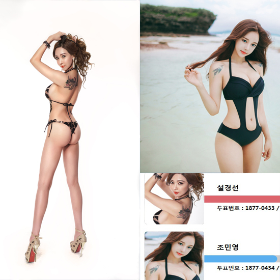 정말 핫한 비키니 자태를 취한 두 모델의 불꽃 튀는 레이스가 기대되는 가운데, 설경선 vs 조민영의 투표는 6월 17일부터 24일까지 스타서베이 페이지를 통해 할 수 있으며, 각 승부의 우승자가 결승전을 하게 되는 토너먼트 형식으로 진행됩니다. [제공=임팩트]