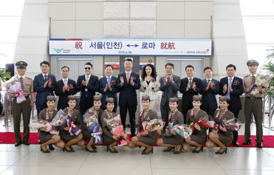 아시아나는 30일 인천국제공항 여객터미널에서 티지아나 디 몰페타(Tiziana Di Molfetta) 주한 이탈리아대사관 참사관(대사 업무대행), 박완수 인천국제공항공사 사장, 박철구 인천공항세관장, 전진선 인천공항경찰대장, 김수곤 서울지방 항공청장, 윤현덕 국립인천공항검역소 소장, 배호열 농림축산검역본부 인천본부장, 최문식 인천공항출립국사무소 소장, 가수 싸이 등이 참석한 가운데 로마 취항식을 가졌다.
