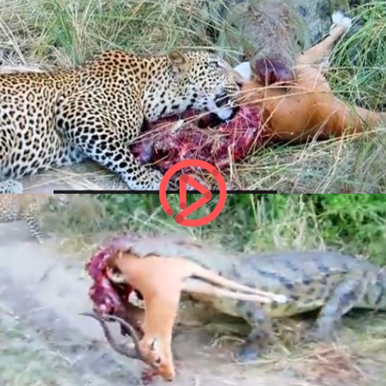 바로 악어가 한창 식사 중이었던 건데, 그런 임팔라가 탐이 난 표범이 그냥 둘리 없죠.