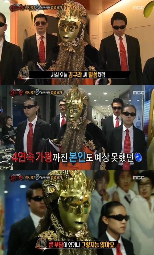 ‘복면가왕’ 인기의 중심엔 절대고수로 군림하고 있는 ‘화생방실 클레오파트라’가 자리하고 있다. 부활의 ‘사랑할수록’을 부른 ‘화생방실 클레오파트라’는 그룹 스피카 리더 김보아를 꺾고 7대 가왕에 등장했다. 4~7대까지 4연승이자 8주 연속 가면을 벗지 않고 있다. 두 달 동안 지존인 셈이다.