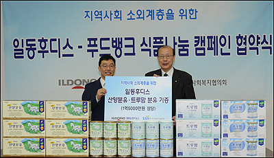 이번 협약을 통해 일동후디스는 자사의 분유제품은 물론 각종 유제품 및 건강기능식품 등 다양한 제품을 사회복지협 푸드뱅크에 지속적으로 기부해 사회복지협과 함께 저소득층 영유아들의 건강한 성장과 발달을 돕는 데 힘을 합치기로 했다.