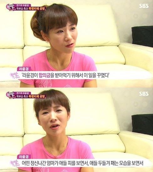 이날 방송에서 라윤경은 합의금 목적으로 일을 꾸몄다는 소문에 대해 “어느 정신 나간 엄마가 애들 피를 보면서, 애들 두들겨 패는 모습을 보면서 돈을 받아내려고 하겠냐. 그런 엄마가 어디 있냐”고 눈물을 쏟기도 했다.