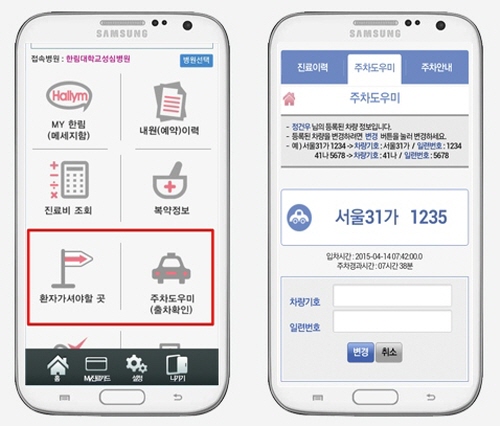 고객가이드 2.0 앱에서 ‘주차도우미’ 기능에 환자의 차량번호를 미리 한번만 등록하면, 입차시간, 주차경과시간을 스마트폰으로 확인도 가능하고 진료비 영수증이 없어도 주차비를 정산할 수 있다. 그리고 무료주차 시간 내라면 출차시 주차차단기가 자동으로 개폐되어 내 집처럼 자동으로 문이 열려 대기할 필요 없이 매번 나갈 수 있다.