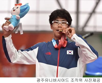 남자 프로테니스 랭킹 79위인 정현은 세계 대학생 최강을 증명하며 금메달을 목에 걸었다. 정현은 동반 출전한 선수들의 단·복식, 혼합복식 결과를 합산해 순위를 매기는 단체전에서도 우승해 2관왕에 올랐다. epi0212@kmib.co.kr
