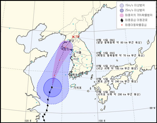 13일까지도 한반도가 태풍 영향권에 들면서 비는 계속될 전망이다. 이날 오후 8시30분부터 13일 자정까지 예상 강우량은 서울·경기와 강원 영서, 서해 5도 10∼50㎜, 충남·북, 강원 영동, 남부지방, 제주도, 울릉도·독도 5~30㎜다.