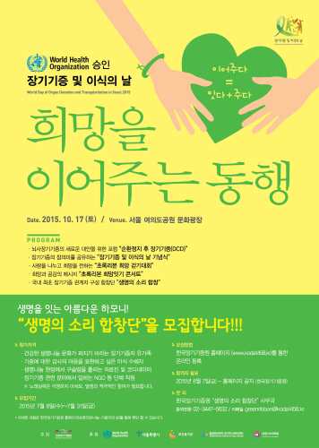 내달 22일부터 연습에 들어가는 생명의 소리 합창단은 오는 10월 17일(토) 10시부터 WHO승인으로 여의도공원에서 열리는 세계장기기증 및 이식의 날 행사와 국제 학술대회인 ISODP행사에서 공연을 선보일 예정이다.