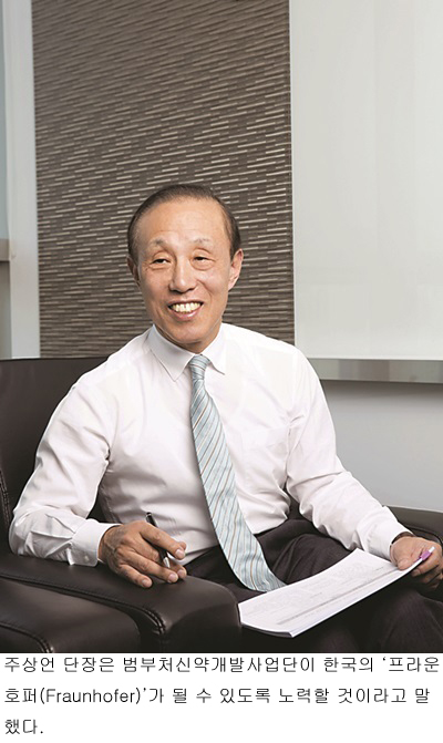 범부처신약개발사업단(이하 사업단)은 2020년까지 글로벌 신약(후보물질) 10개 이상 개발(Licensing Out)을 목표로 미래창조과학부와 산업통상자원부, 보건복지부가 공동으로 참여해 2011년 출범했다. 이를 위해 9년간 1조600억원(정부 5300억원)이 투입된다. 주상언 단장을 만나 현재 성과와 전망에 대해 이야기를 들었다.