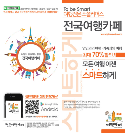 지난 1년 동안 ‘경주여행카페’라는 이름으로 경주지역 전문 여행, 레저, 숙박 상품 판매해 온 ‘전국여행카페’는 전국 여행지 입장권, 할인 티켓, 리조트, 호텔, 특산품 등 다양한 상품을 구성하고 상호를 변경했다.