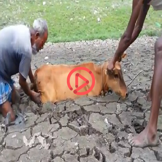 소 주인과 마을 주민들이 합심해 소를 구조해 보는데, 이미 소의 네 다리가 깊숙이 박혀버린 데다 구조하려는 주민들도 힘을 쓸 때 마다 다리가 진흙구덩이에 쑥쑥 빠져드는 상황으로 쉽진 않아 보입니다.