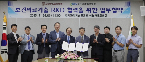 [쿠키뉴스=김단비 기자] 고대안산병원과 경기과학기술진흥원은 24일 경기과학기술진흥원 회의실에서 업무협약을 체결하고 보건의료기술(HT) R&D 분야에서 긴밀한 협력관계를 구축하기로 약속했다.