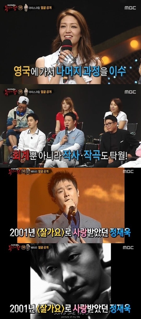이날 두 사람은 쥬얼리의 ‘슈퍼스타’를 선곡해 화끈한 공연을 펼쳤다. 결과는 71대28로 ‘고추 아가씨’의 승리. 복면을 벗은 ‘달콤살벌 아이스크림’의 정체는 배수정이었다.