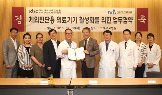고대 구로병원 의료기기개발-중개임상지원센터는 체외진단기업협의회와 29일 업무협약 체결식을 갖고 체외진단관련 의료기기의 개발 및 평가와 임상시험을 통한 국내 산업화 촉진 및 글로벌 경쟁력 확보를 위해 긴밀히 협력할 것을 약속했다.