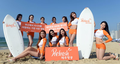 오후에는 해운대해수욕장과 주변 시내를 ‘제주항공 모바일 앱을 다운받으면 선물을 준다’는 피켓을 들고 돌며 제주항공의 부산발 국제선 노선을 홍보했다.