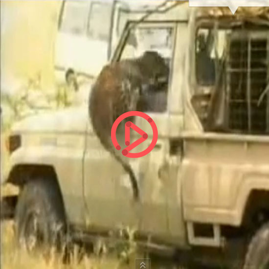 매우 사납게 저항하던 표범은 우리 밖을 나오자마자 갑작스레 픽업트럭 안에 있던 관리인을 덮칩니다.