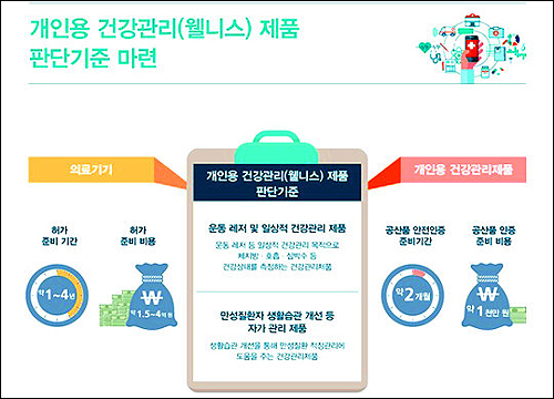 식품의약품안전처는 의료기기와 운동·레저 등에 사용되는 웰니스 제품을 명확하게 구분할 수 있는 ‘의료기기와 개인용 건강관리(웰니스)제품 판단기준’을 마련, 지난달 10일부터 시행에 들어갔다. 이승용 식약처 의료기기정책과 사무관은 “최근 융복합·신개념 제품이 등장하고 의료기기와 구분이 모호한 웰니스 제품이 개발·시판되면서 구분기준을 명확히 하기 위해 판단기준을 마련하게 됐다”며 “이에 따라 제조자 등에게 예측 가능성을 제공하고 의료기기법 적용의 일관성을 높일 수 있게 됐다”고 설명했다.