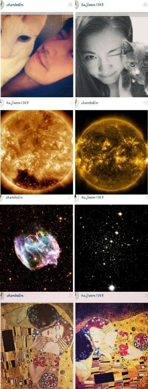 네티즌들은 하지원과 진백림이 특정 장소에서 비슷한 포즈로 찍었거나 유사한 이미지가 담긴 사진들이 우연의 일치라고 하기엔 너무 절묘하다는 지적이다. 특히 싱가포르에서 각자 커피잔을 들고 찍은 사진은 두 사람 모두 게재일이 30주 전으로 표기돼 있어 방문 시기가 겹친다.