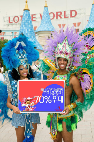"[쿠키뉴스=김진환 기자] 롯데월드 어드벤처가 광복 70주년을 맞아 연휴인 오는 14일부터 16일까지 국가유공자를 대상으로 자유이용권 70% 우대 이벤트를 진행한다.