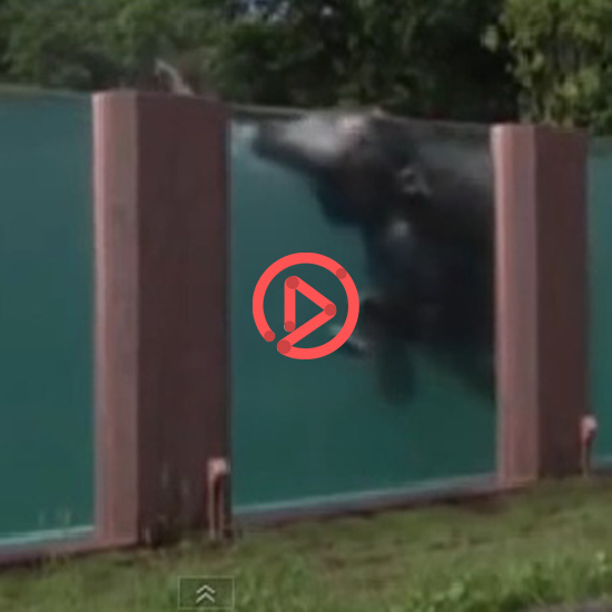 물속 안이 훤히 보이는 풀장에서 허공에 발길질 하듯이 수영하는 어린 코끼리의 모습, 무거운 몸 때문에 네 발을 저을 때마다 풀장의 물이 한없이 넘쳐나는데요.