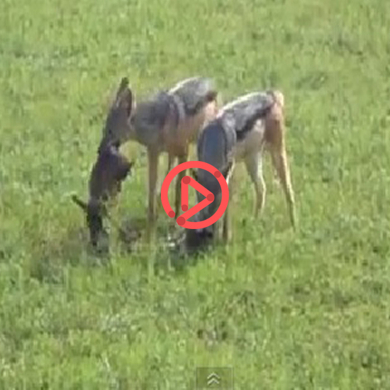 두 마리 자칼이 어미와 새끼 가젤을 사냥하는 중인데요.