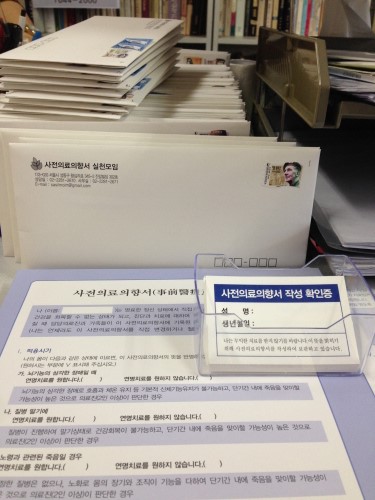 일반인 누구나 전화 상담을 통해 필요한 내용을 물어보고 원한다면 사전의료의향서를 집 또는 사무실로 받아볼 수 있다. 사무실 한쪽에 내일이면 우체국으로 보내질 우편물들이 가득했다. 모두 사전의료의향서와 그 작성방법이 담긴 우편물이다. 이곳에서 일하는 자원봉사자들은 상담 업무뿐 아니라 손수 편지봉투에 사전의료의향서를 넣고 친필로 상담자의 주소를 써서 그들에게 보내준다.
