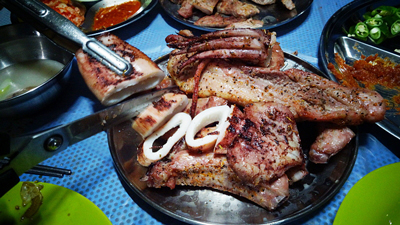 삼겹살과 목살, 떡갈비와 수제소시지가 숯불에서 바비큐로 구워져 나온다. 이와 함께 각종 회와 스시, 롤은 물론 양식류와 샐러드, 한식, 과일과 디져트 등 80여종의 음식이 마련돼 있다. 질 좋은 고기와 신선한 재료를 이용해 만든 음식들로 채워졌다.